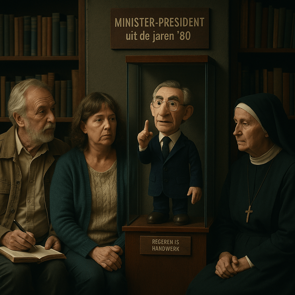 De pop werd niet verkocht. In plaats daarvan kreeg het een plekje in een vitrine met de titel: “Regeren is Handwerk”. De pop stond er als symbool van democratisch spel, van machtsvoorstelling in miniatuur. Een bordje erbij legde uit dat dit project begin jaren ’80 was opgezet om jongeren te betrekken bij politiek via toneel en rollenspel — in een tijd waarin de kloof tussen burgers en bestuur snel groeide.
