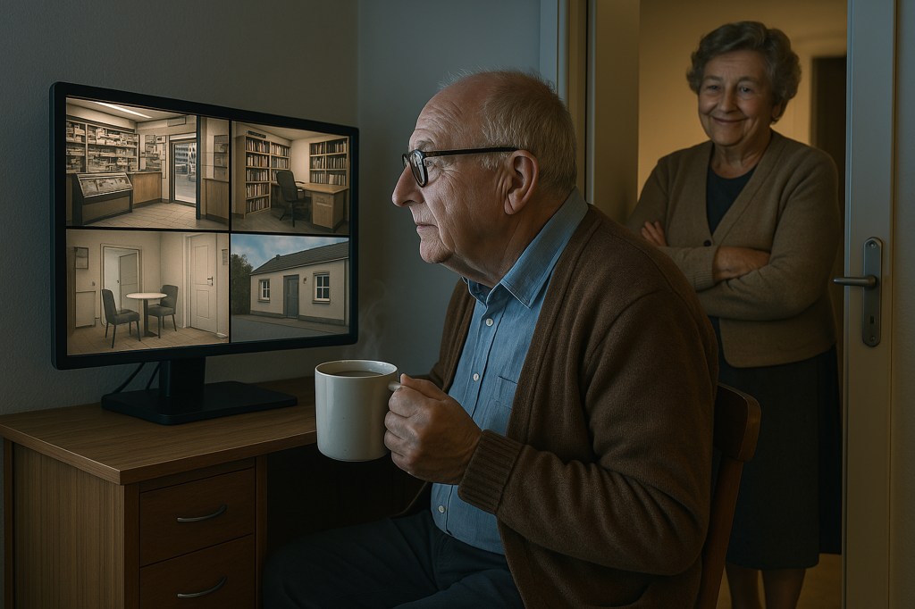 Jannus zat er vaker dan verwacht. Met zijn handen om een kopje koffie zat hij voor het scherm alsof het een aquarium was: stil, observerend, onder de indruk van de zoomfunctie. Soms kwam Trees binnen en zei niets — ze keek alleen.