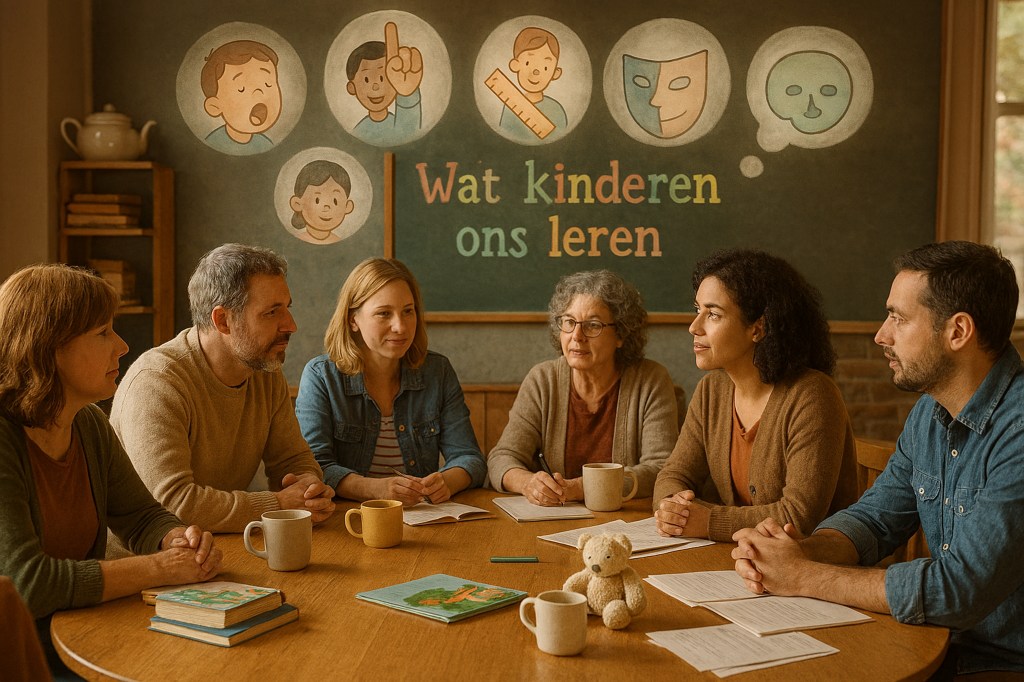 Het gesprek zwol aan. Ze spraken over regels – dat kinderen die juist waarderen als ze eerlijk zijn. Over het maskeren van angsten, dat vrolijke kinderen soms een masker dragen. Over het scherpe oog dat kinderen hebben voor emoties, en hoe ze feilloos merken of hun ouders gespannen zijn.