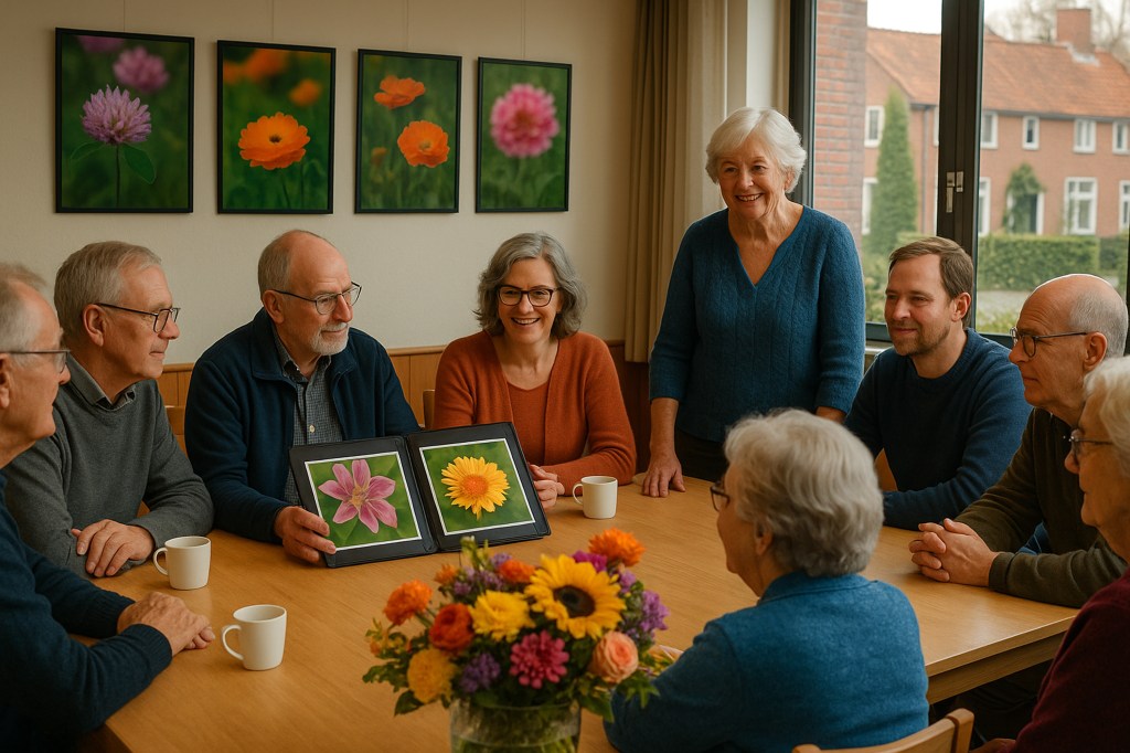 Op de volgende donderdagavond, toen Willy de eerste ingelijste foto’s meebracht, gingen er direct bewonderende blikken rond. Bjorn floot zachtjes: “Nou, dit ziet er professioneel uit.” Bea knikte instemmend: “Het is alsof de bloemen de hele ruimte binnenkomen.”