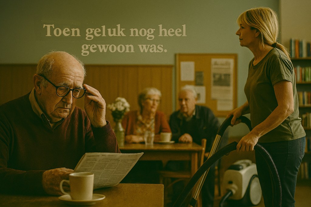 En terwijl Bea de stofzuiger weer aanzette en Toon zijn krant opgaf ten gunste van een kop koffie, zei Trees: “Zolang er hier iemand de pineut is, blijft het leven gewoon. En dat is precies wat we nodig hebben.”