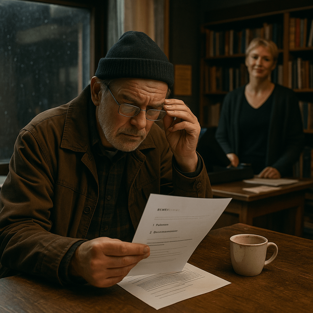 Er stonden woorden in als participatieplek, werkoriëntatie en maatschappelijke bijdrage. Hij was eraan gewend geraakt dat zijn leven samengevat werd in beleidsjargon.