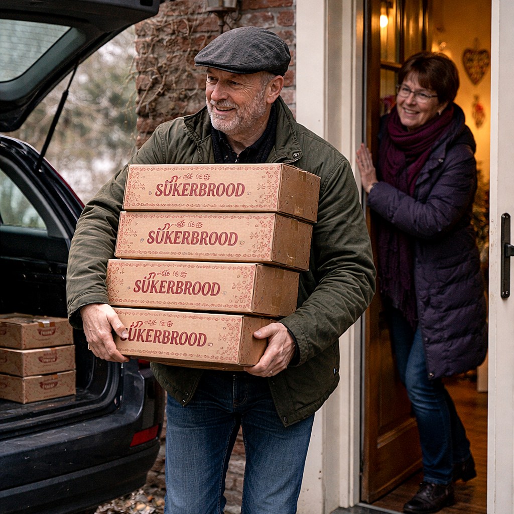 “Dank je, mem,” zei Piet, terwijl de geur van gesmolten suiker en kaneel al door de kieren van de doos ontsnapte. Hij zette de kostbare lading voorzichtig op de achterbank, als was het een krat vol kwetsbare elektronica uit zijn eigen reparatiecentrum.