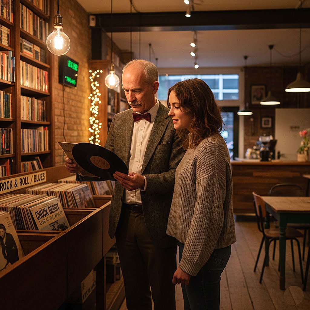 Meneer van Aalst bleef even doodstil staan, een zeldzaam moment waarop hij zijn kalmte leek te verliezen. Hij hield een stoffige elpee van Chuck Berry in zijn handen en staarde naar de hoes alsof daar het antwoord op geschreven stond.