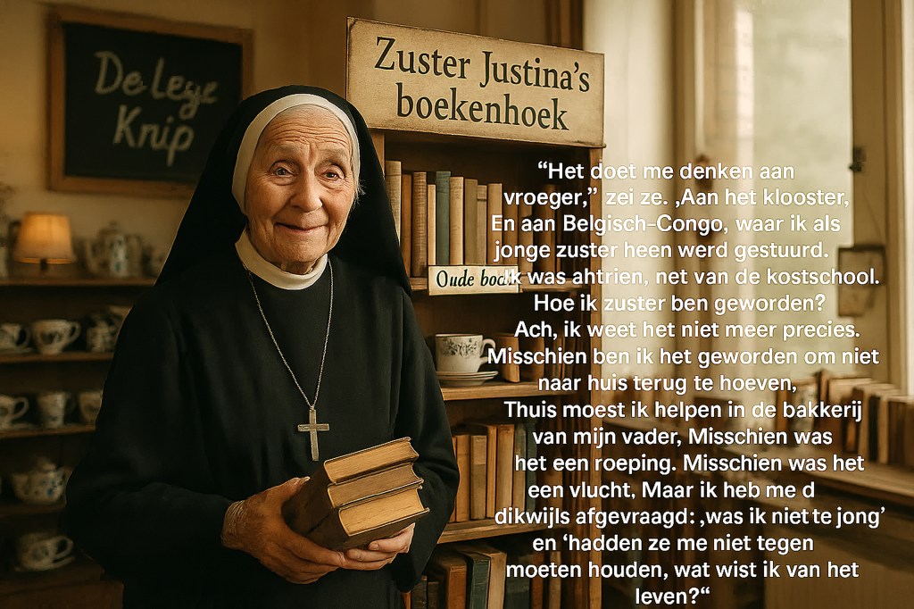 De vrouw knikte langzaam. “Ik ben Justina. Zuster Justina. Of eigenlijk: dat ben ik geweest. Nu ben ik gewoon… een oude vrouw met een lastige rug en een bibliotheek waar ik niet meer voor kan zorgen.”