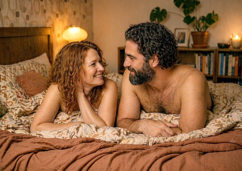 Een kwartier later, nadat de breedstraler was uitgezet en ze elkaar in de dampende badkamer hadden afgedroogd met de zachte handdoeken die Erik had klaargelegd, stapten ze in zijn strak opgemaakte bed. De slaapkamer was koel en rook naar fris wasgoed en een vleugje van Sally’s parfum. Het felle licht van de badkamer had plaatsgemaakt voor de zachte, warme gloed van het nachtlampje.